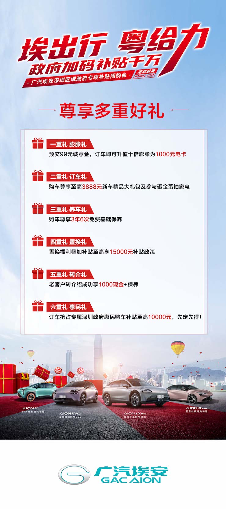 【深圳市】埃出行 粤给力 广汽埃安深圳区域政府专项补贴团购会