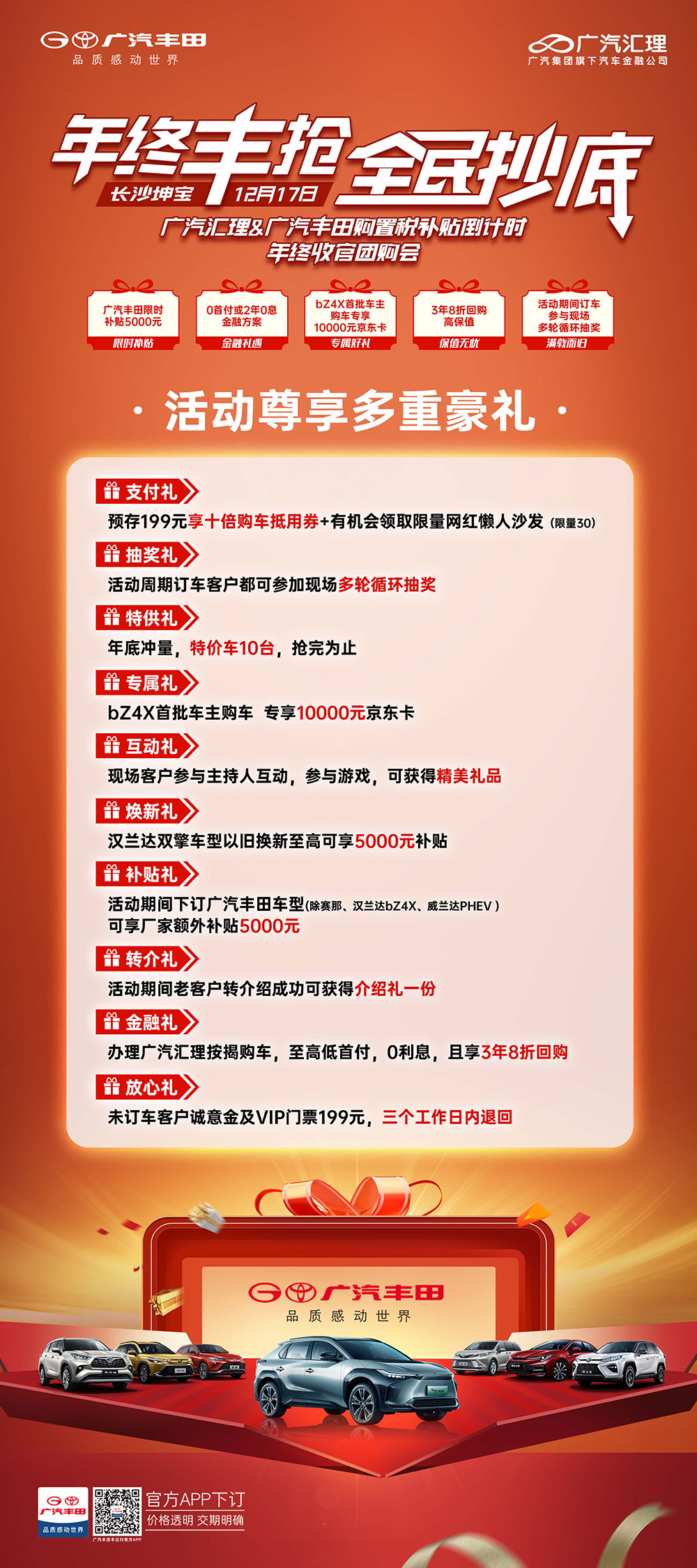 【长沙市】年终丰抢,全民抄底--广汽汇理&广汽丰田购置税补贴倒计时年终收官团购会—长沙坤宝