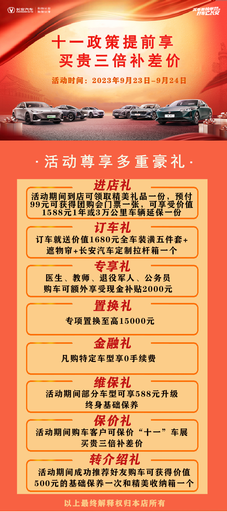 【张掖市】国庆提前享 爆款限时抢——张掖宇通长安汽车超级团购会