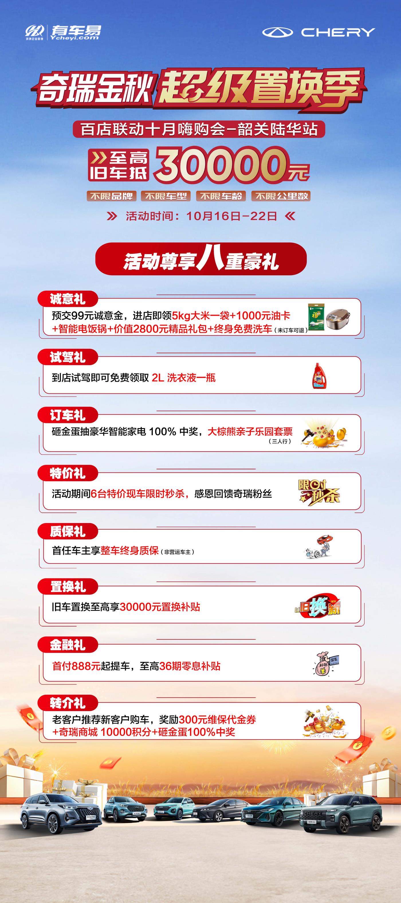 预存99元=进店送5Kg大米+1000元油卡+智能电饭锅+价值2880元精品礼包+终生免费洗车(未订车可退)
