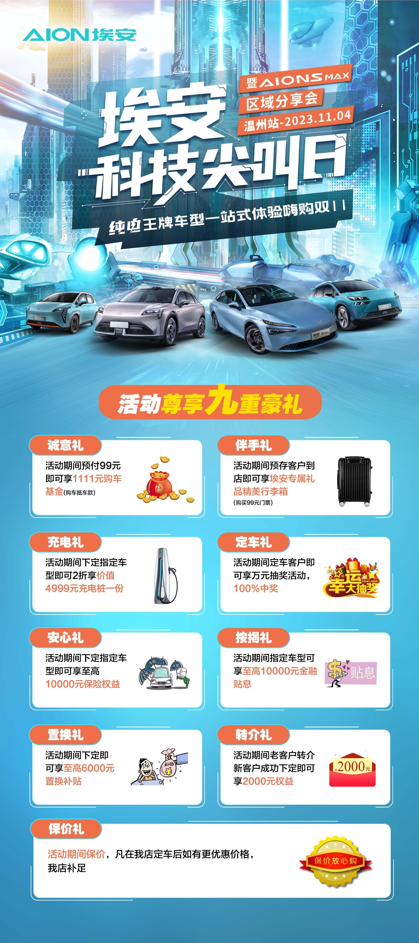 【温州市】埃安科技尖叫日 纯电王牌车型一站式体验嗨购双11—温州站