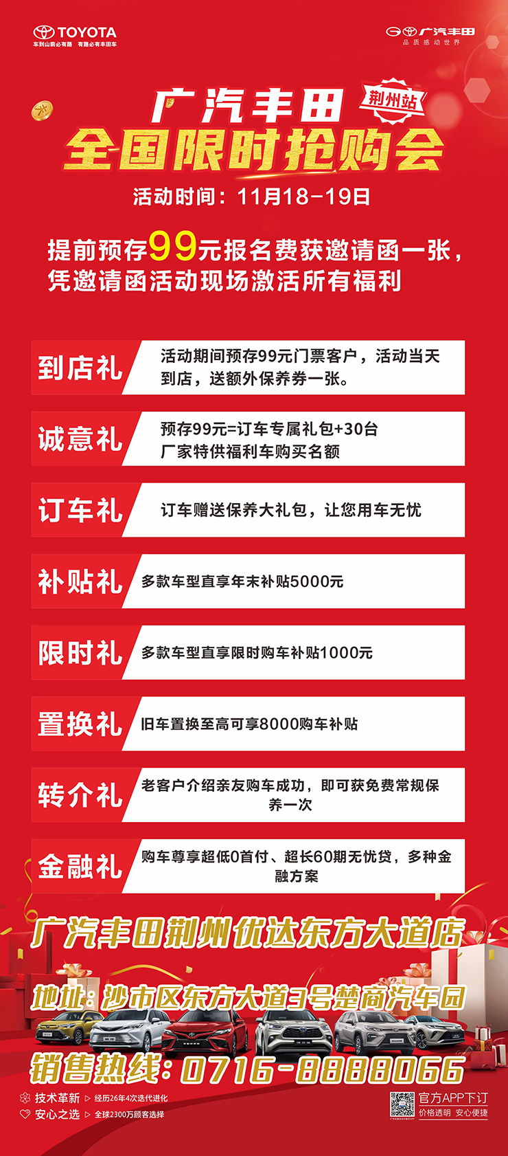 【荆州市】广汽丰田全国限时抢购会【荆州站】