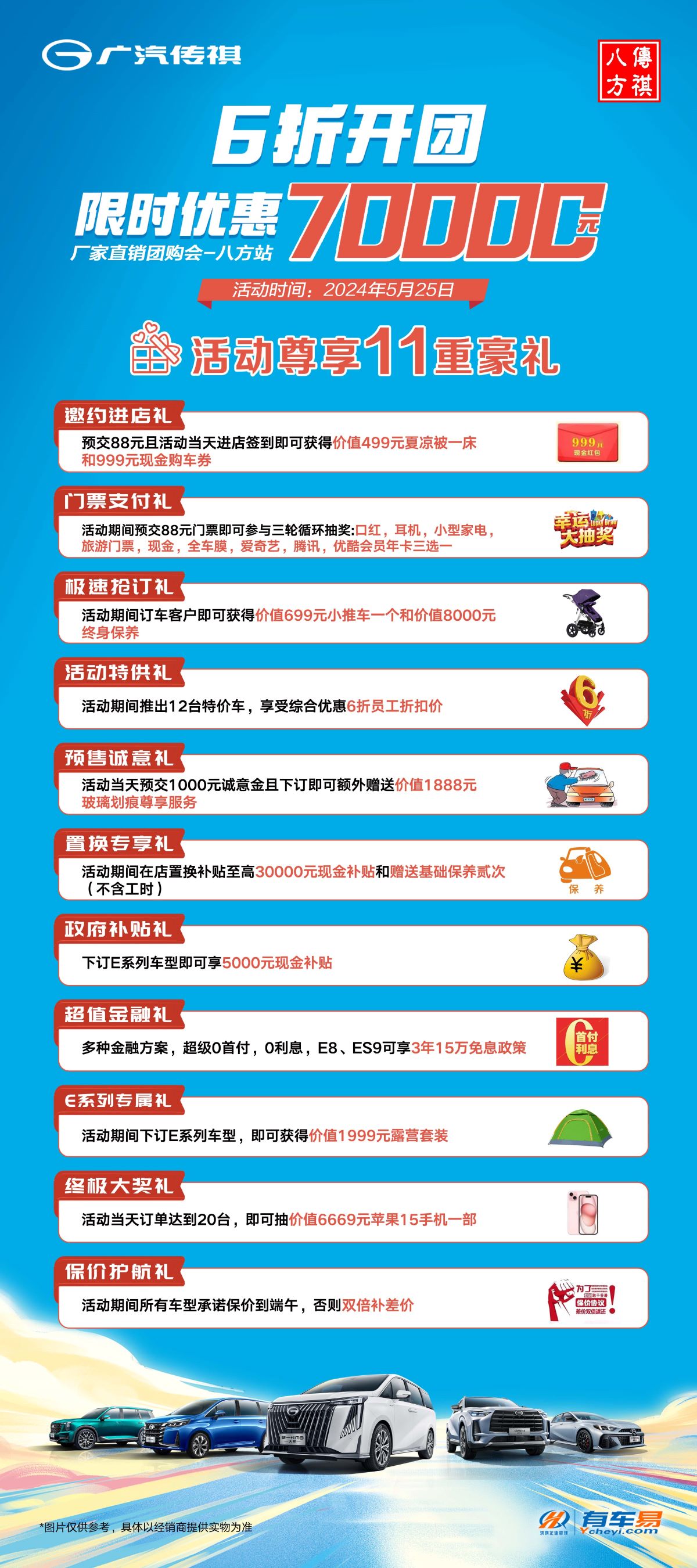 A:有车易精选本地优质4S店资源,会尽最大可能为大家争取最大的利益,正常情况下绝不会高于同城市场价,且现场订车有丰富的奖品。