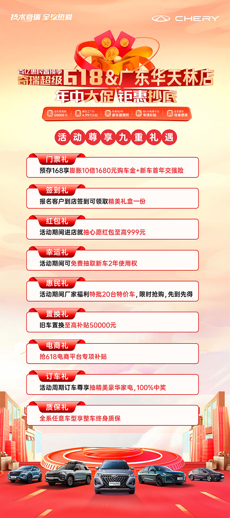 【广州市】百亿惠民置换季 奇瑞超级618 年中大促 钜惠抄底【华天林店】
