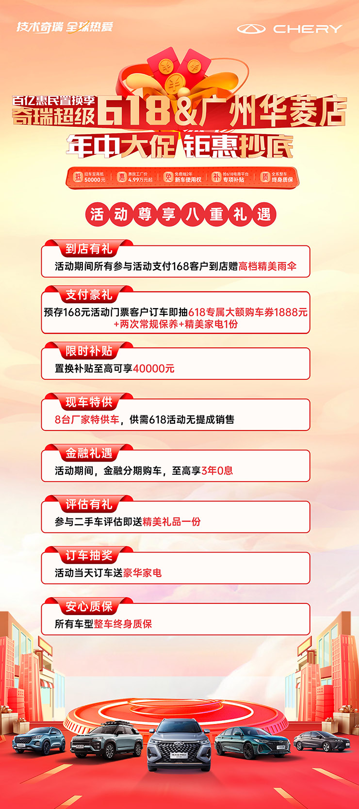 【广州市】百亿惠民置换季 奇瑞超级618 年中大促 钜惠抄底【广州华菱店】