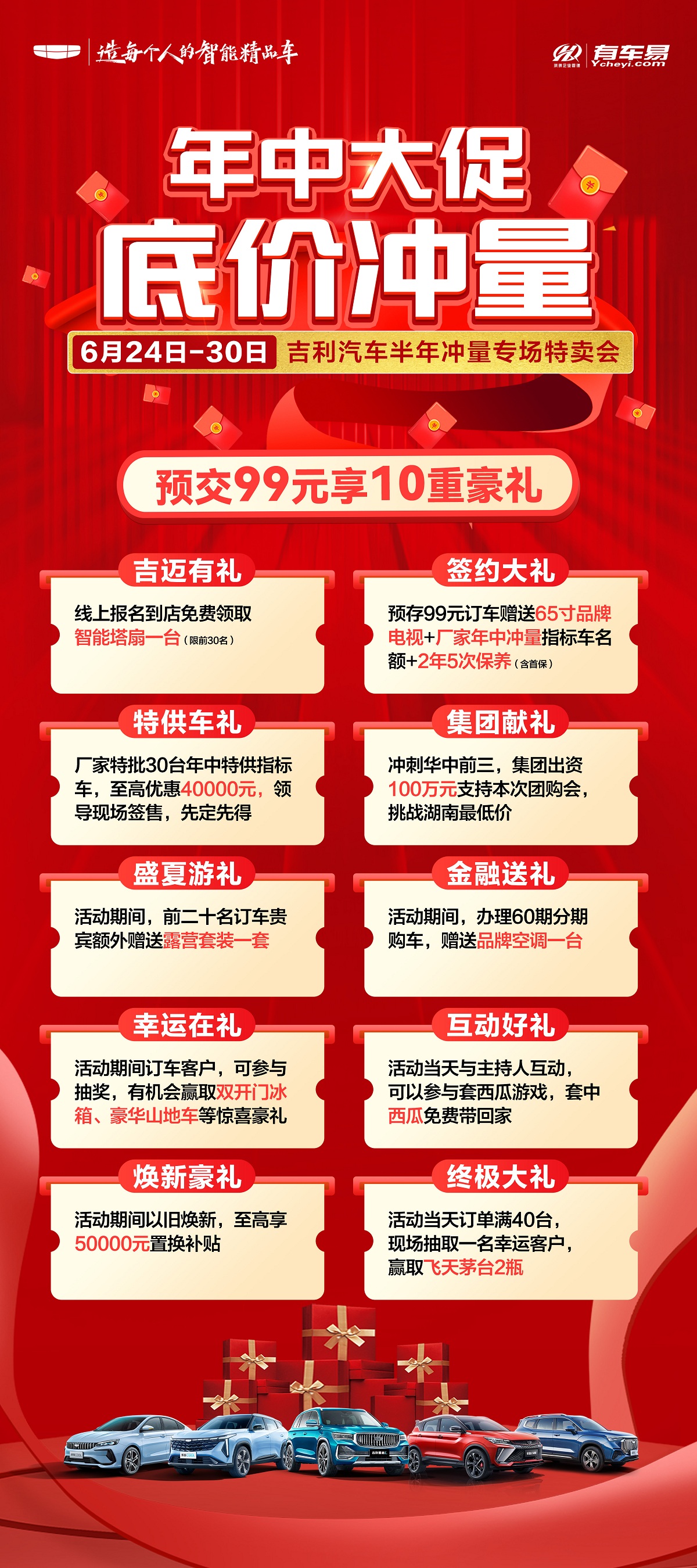【长沙市】年中大促 底价冲量 吉利汽车半年冲量专场特卖会