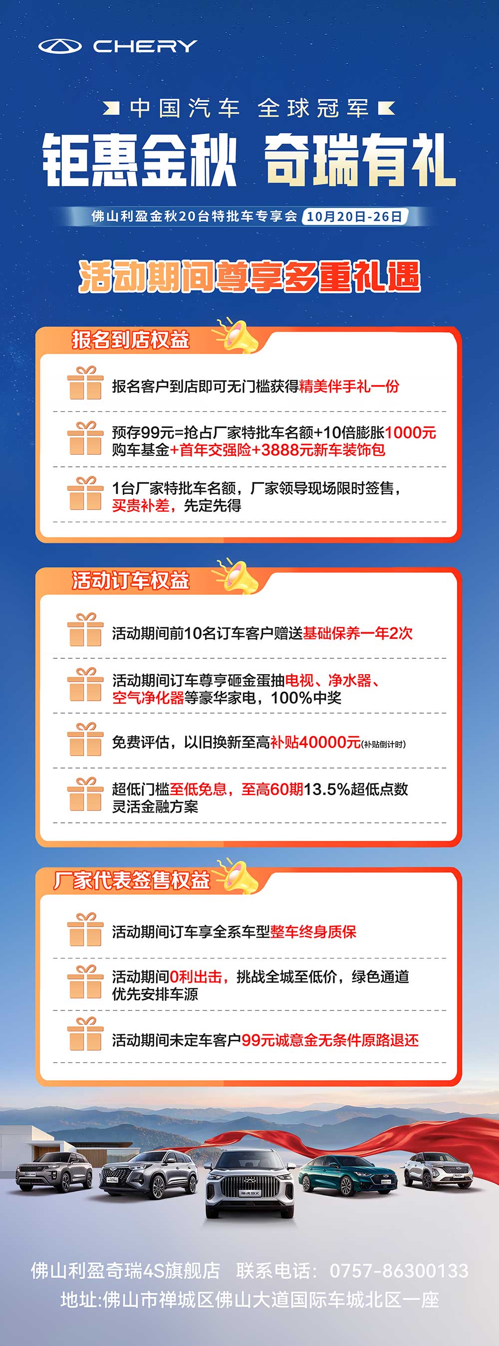 【佛山市】钜惠金秋 奇瑞有礼 佛山利盈金秋20台特批车专享会