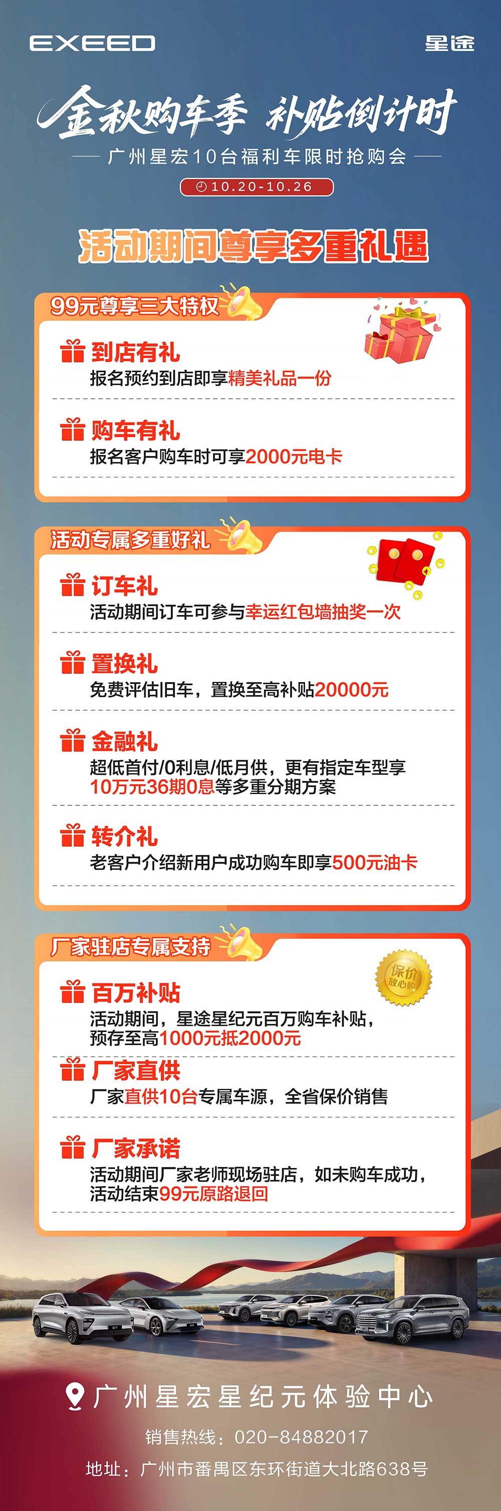 【广州市】金秋购车季 补贴倒计时 广州星宏10台福利车限时抢购会