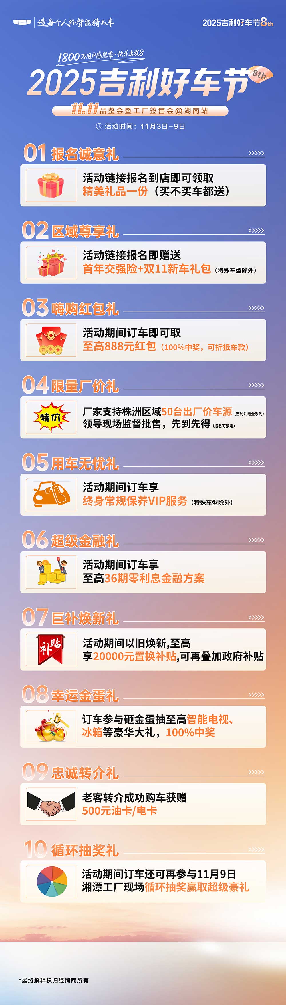 【株洲市】2025吉利好车节 11.11品鉴会暨工厂签售会@湖南站