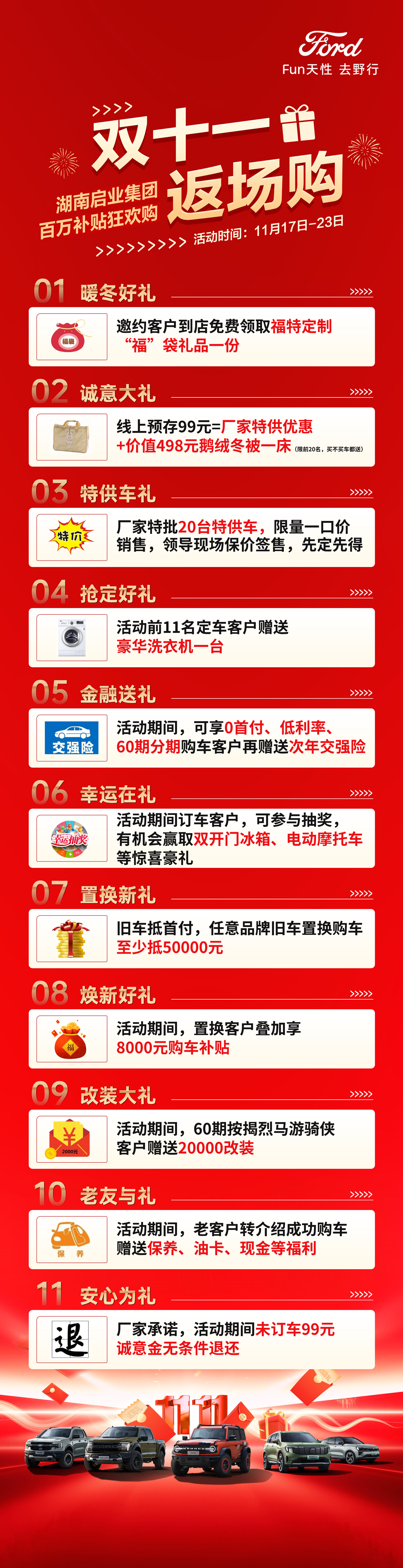 【长沙市】双十一返场购 湖南启业集团百万补贴狂欢购