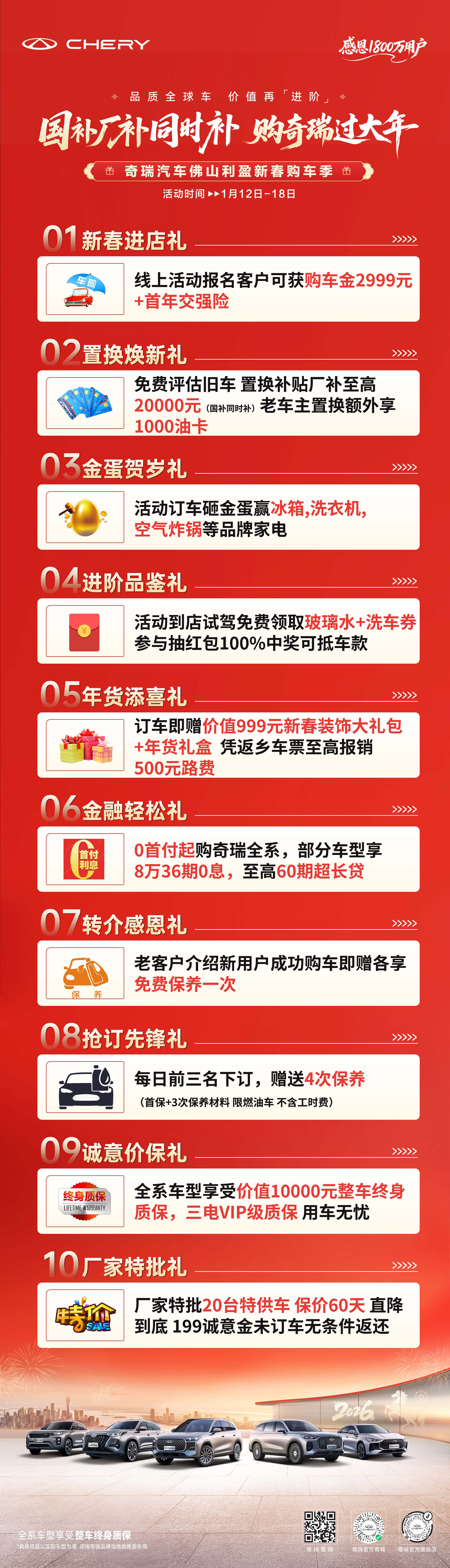 【佛山市】国补 厂补 同时补 购奇瑞过大年 奇瑞汽车佛山利盈新春购车季