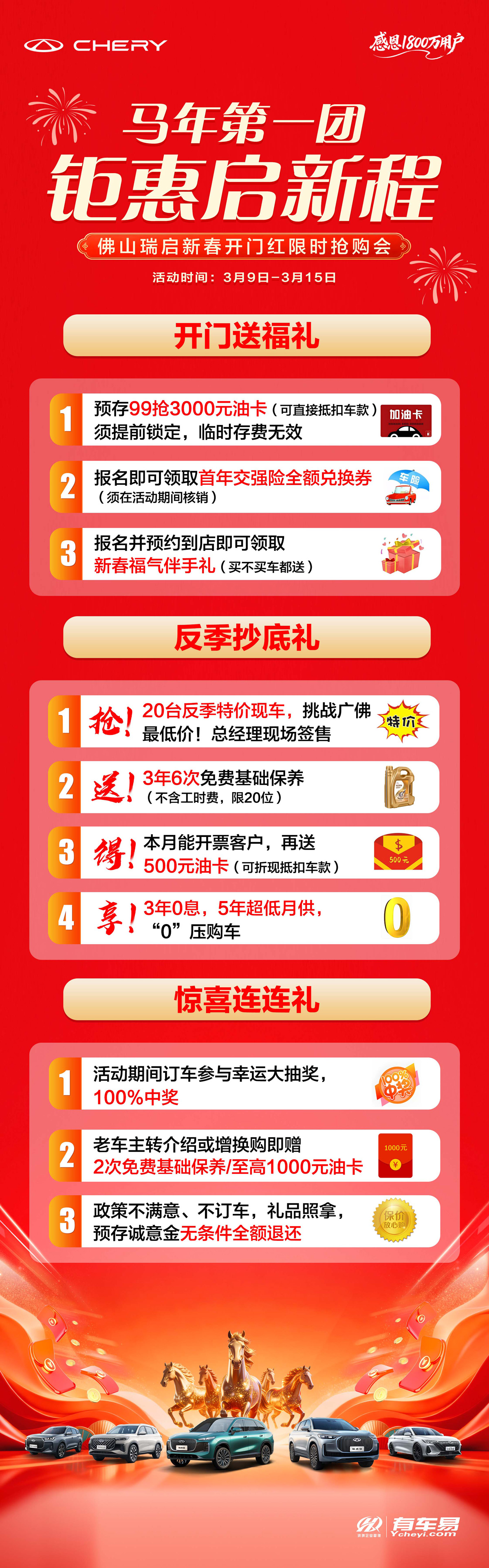 99元诚意金=3000元油卡+送交强险+20台总经理签售特价车+进店伴手礼+3年6次保养+500元提车油卡+未订车无条件退款