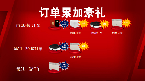 现场订车贵宾,越早订车可享受:千足金金如意+小米电饭煲+小米电磁炉+小米暖风机等大礼