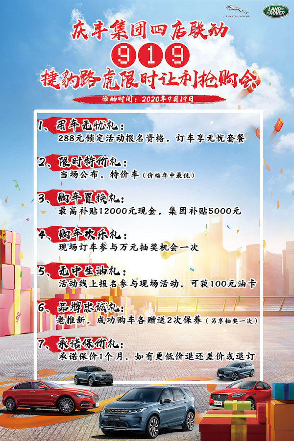 【清远市】庆丰集团四店联动-捷豹路虎9·19限时让利抢购会